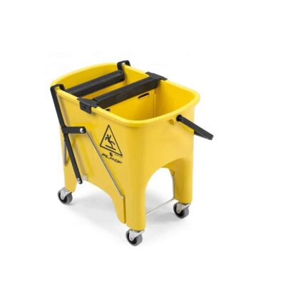 Carrello monovasca con ruote e strizzatore a rullo in gomma.